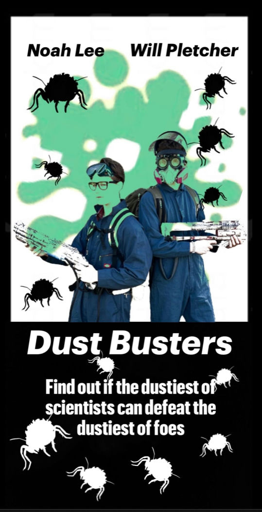 Two scientists, Anton Black and Decker Hopkins, must reunite to fight the experiments created by Theo Darwain the evil CEO of Dust Industries. Can the two crack pot inventors scrape together to save the world as we know it, or will they bite the dust?